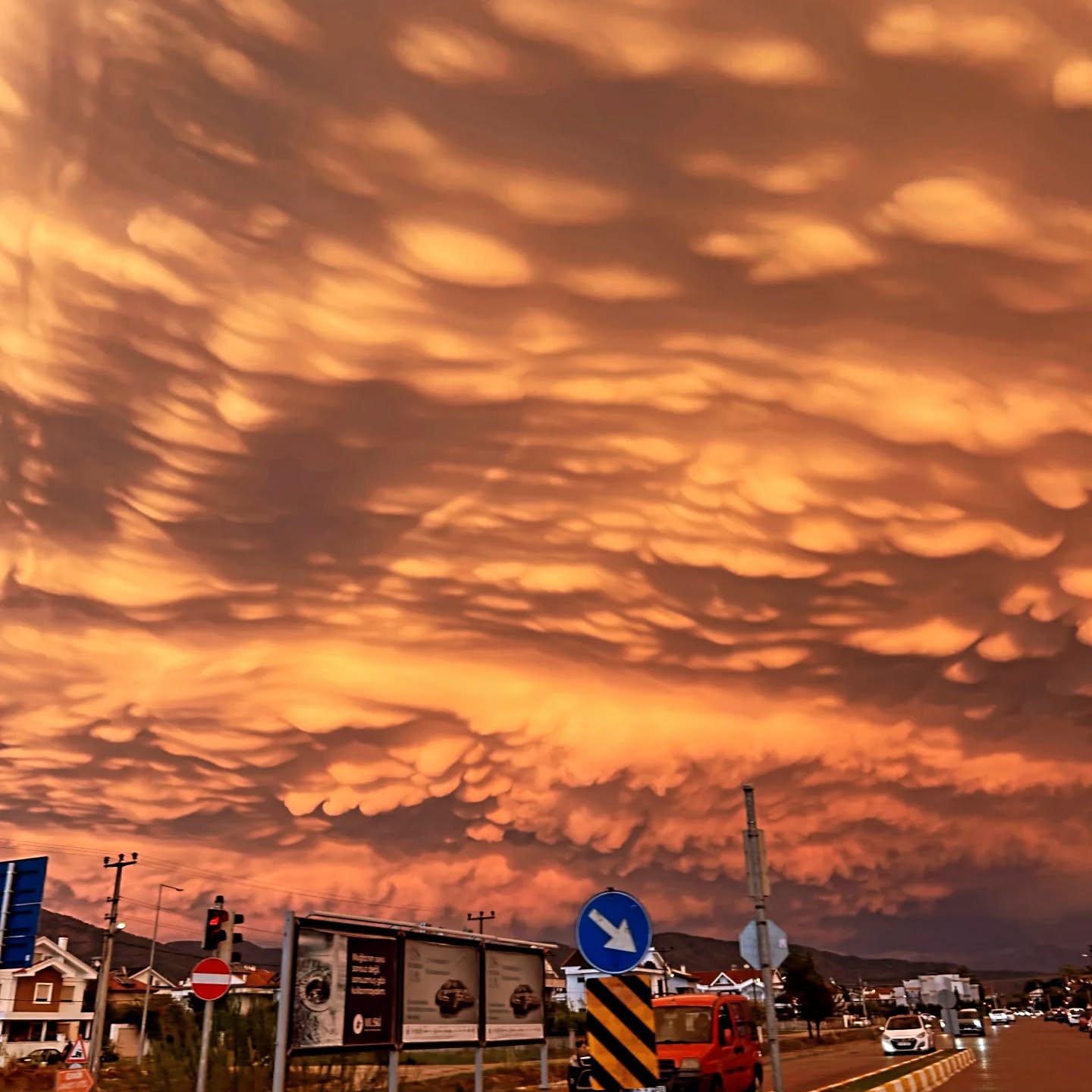 Fethiye’de iklim olayları dikkat çekiyor. Yağmur sonrası ortaya çıkan, kesecik benzeri görünüme sahip ‘Mammatus’ tipi bulutlar, gökyüzünde adeta bir görsel şölen sundu ve fotoğraf tutkunlarının ilgi odağı oldu.