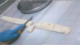 Oklava ya da merdane yardımıyla açılan yufka aşağıdaki şekilde görüldüğü gibi katlanarak kesilir.
