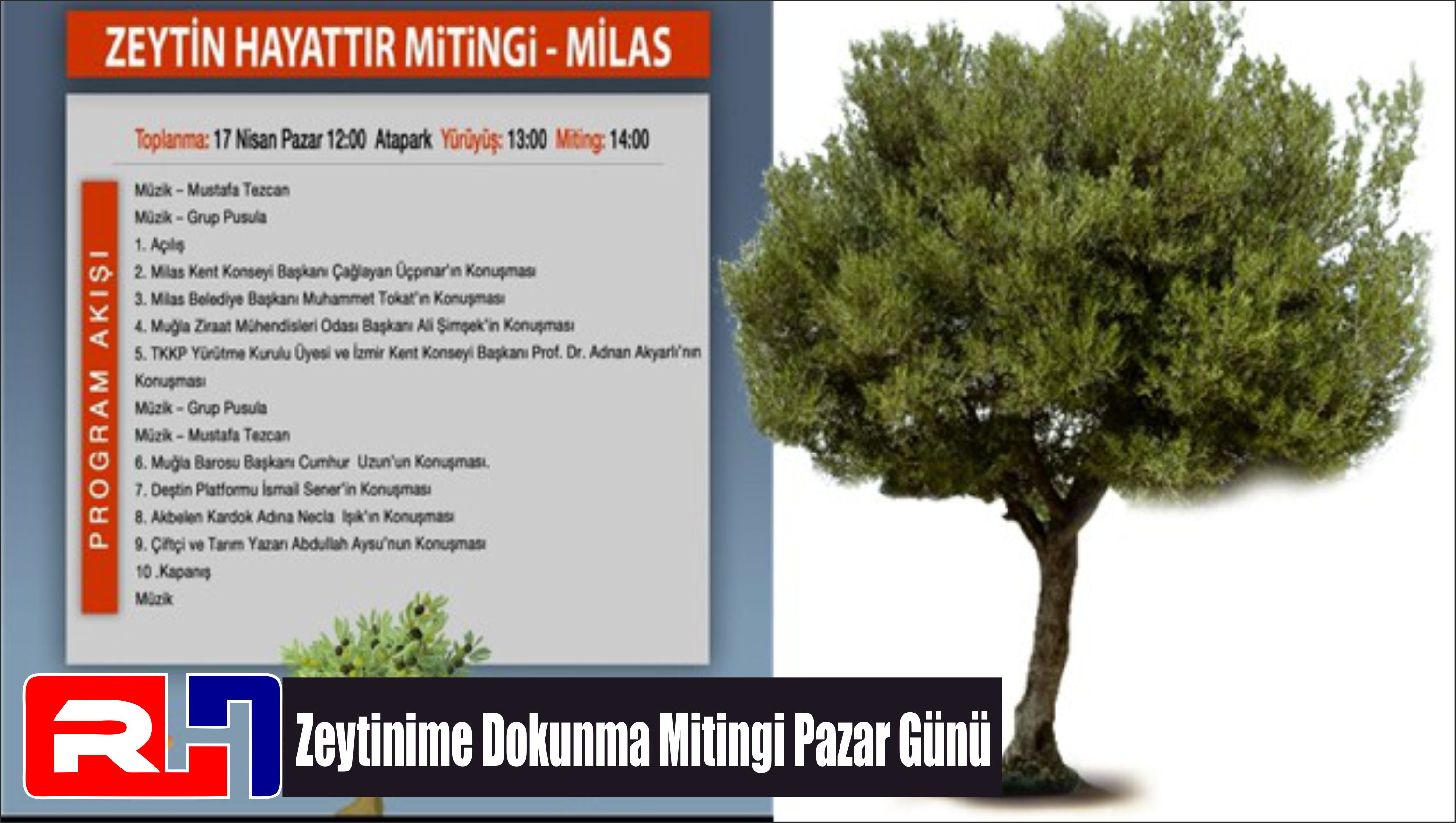 Milas Kent Konseyi tarafından düzenlenecek Zeytin Hayattır Hayatıma Dokunma mitingi 17 Nisan 2022 Pazar günü saat 12’de Atapark’ta başlayacak.